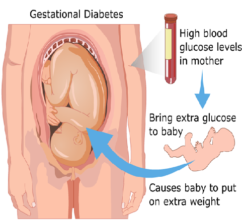 Symptoms of diabetes developing during pregnancy are classified under gestational diabetes. Like other types of diabetes, gestational diabetes affects how your cells use sugar (glucose) — your body’s main fuel. Gestational diabetes causes high blood sugar that can affect your pregnancy and your baby’s health.